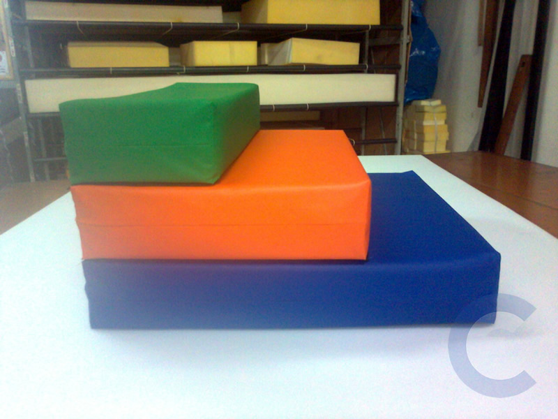 Em todos os tamanhos e também conforme molde com enchimento de fibra de poliéster, flocos de espuma ou espuma em bloco, peças inclinadas,